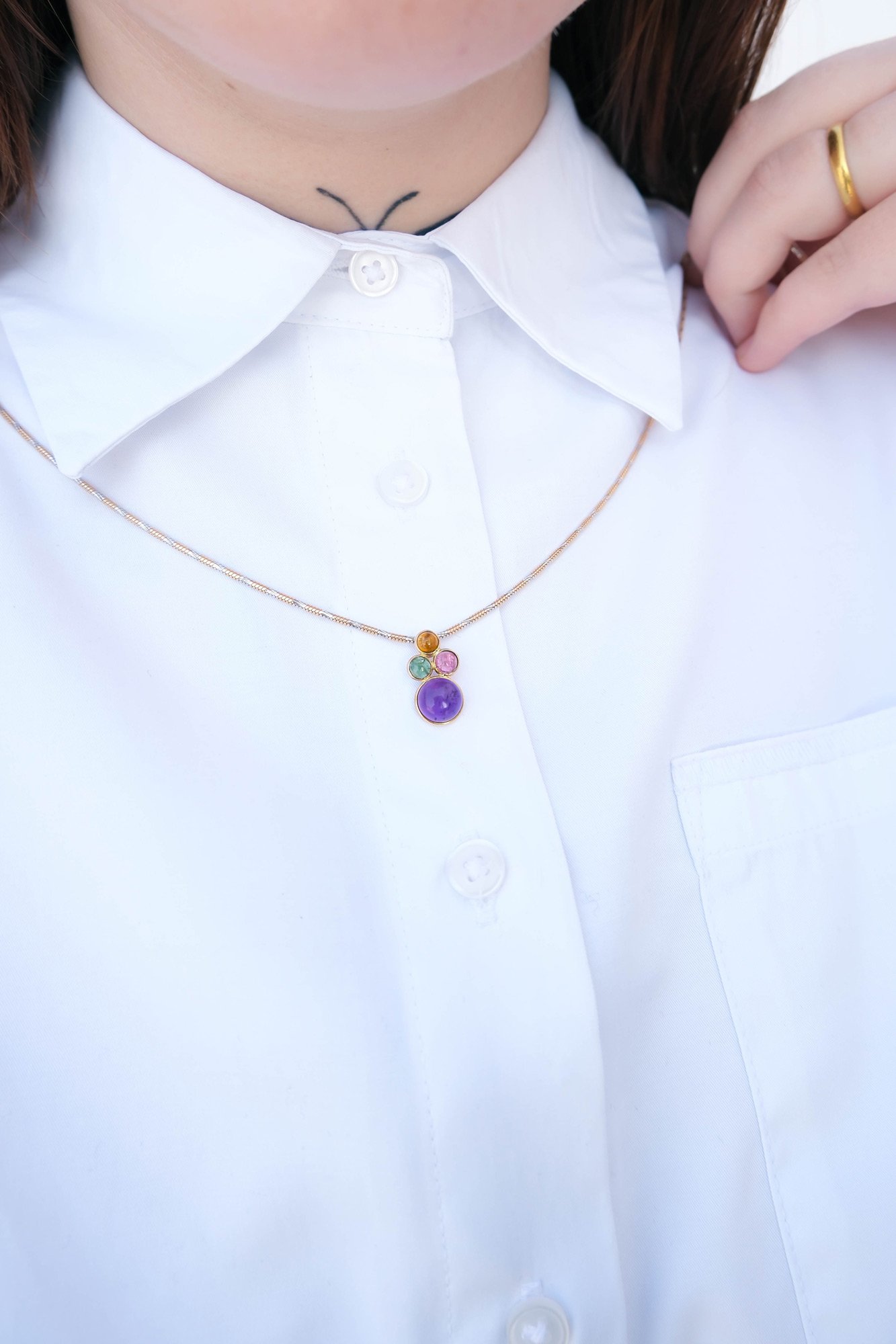 The Twilight Drops Pendant is a radiant tribute to the moment day turns to night. Crafted in 14k gold and glowing with natural gemstones, the Twilight Drops Pendant brings a spark of elegance and mystery. Let the Twilight Spark Pendant light up your personal style.