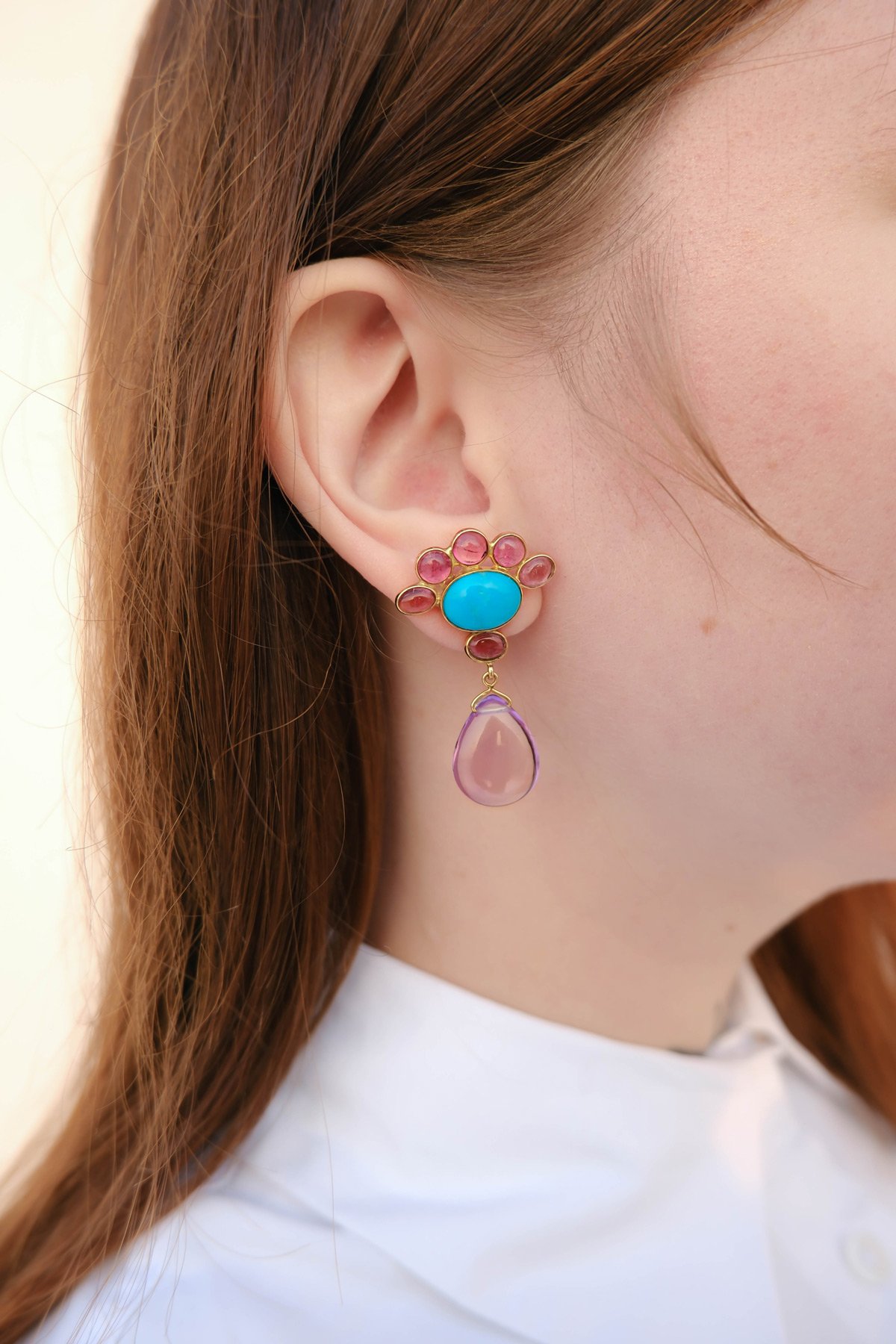 Material :  14k Gold, Natural turquoise, Tourmaline, and Amethyst