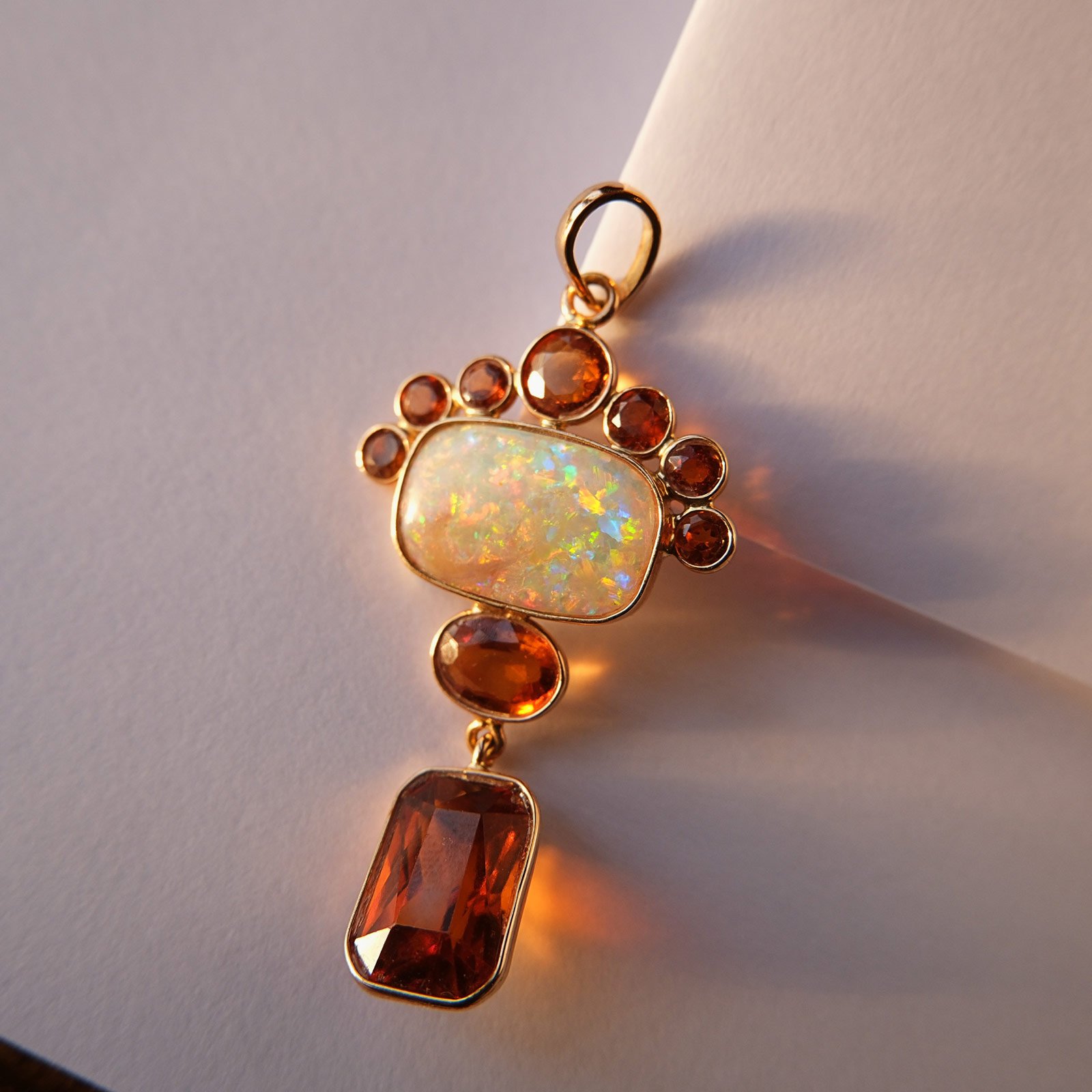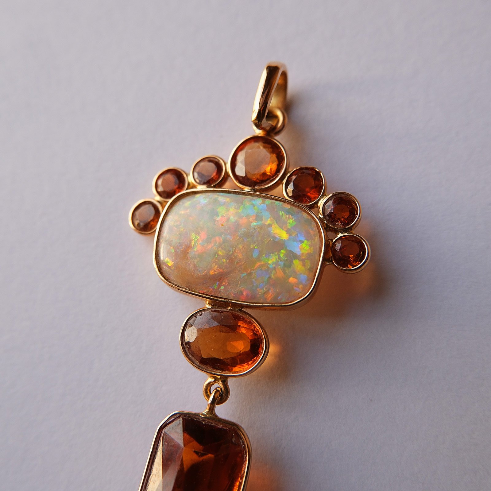 Material :  14k Gold, Natural Opal, and Hessonite