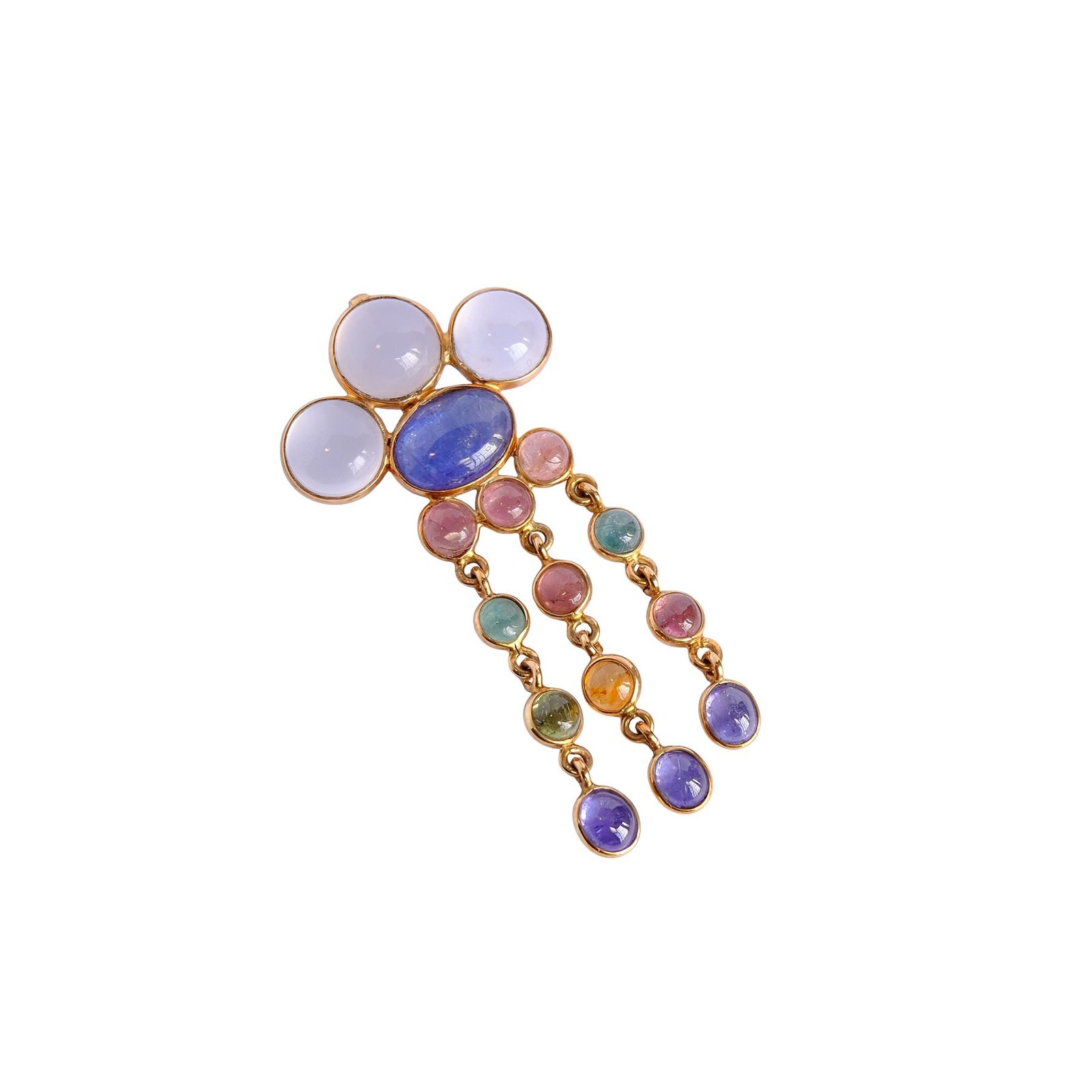Material :  9k Gold, Natural Tourmaline, Tanzanite, and chalcedony