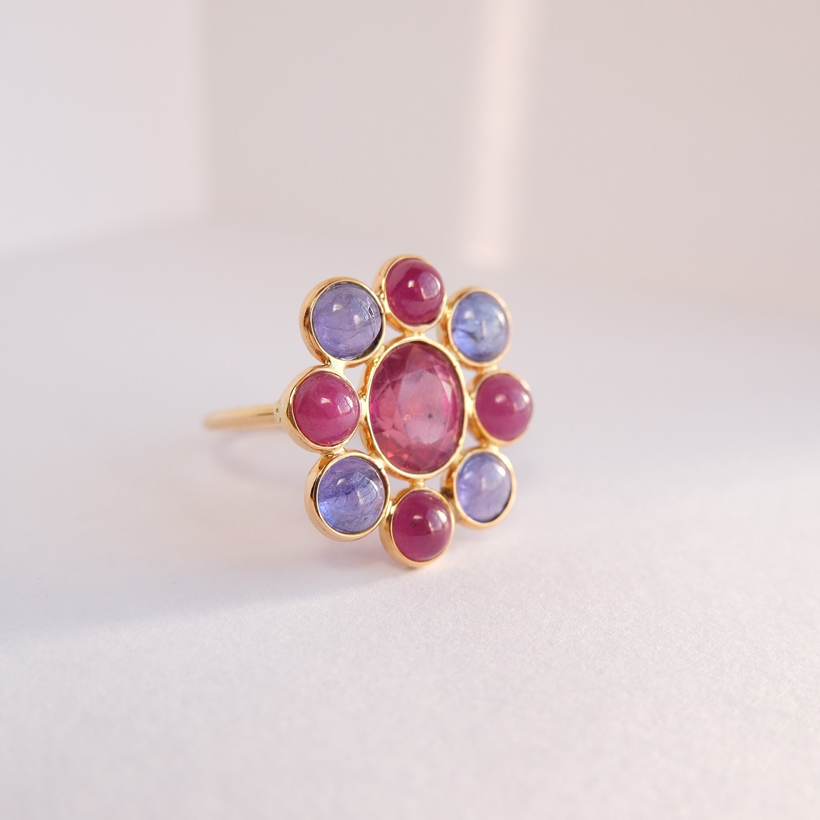 Material :  14k Gold, Natural Ruby, Rubellite, and Tanzanites