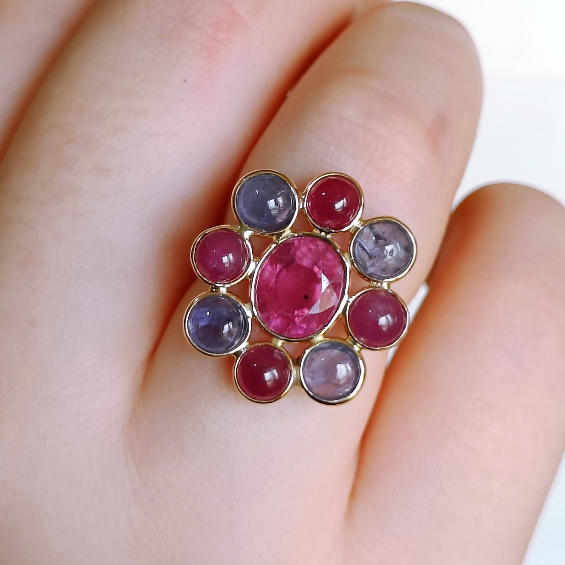 The Royal Berry Ring captures the lush beauty of a sunlit orchard in full bloom. Handcrafted in 14k gold and crowned with a vivid red ruby, the Royal Berry Ring is adorned with deep rubies and rich tanzanites that glisten like rare forest berries. Let the Royal Berry Ring bring a touch of regal vibrance to your every moment.