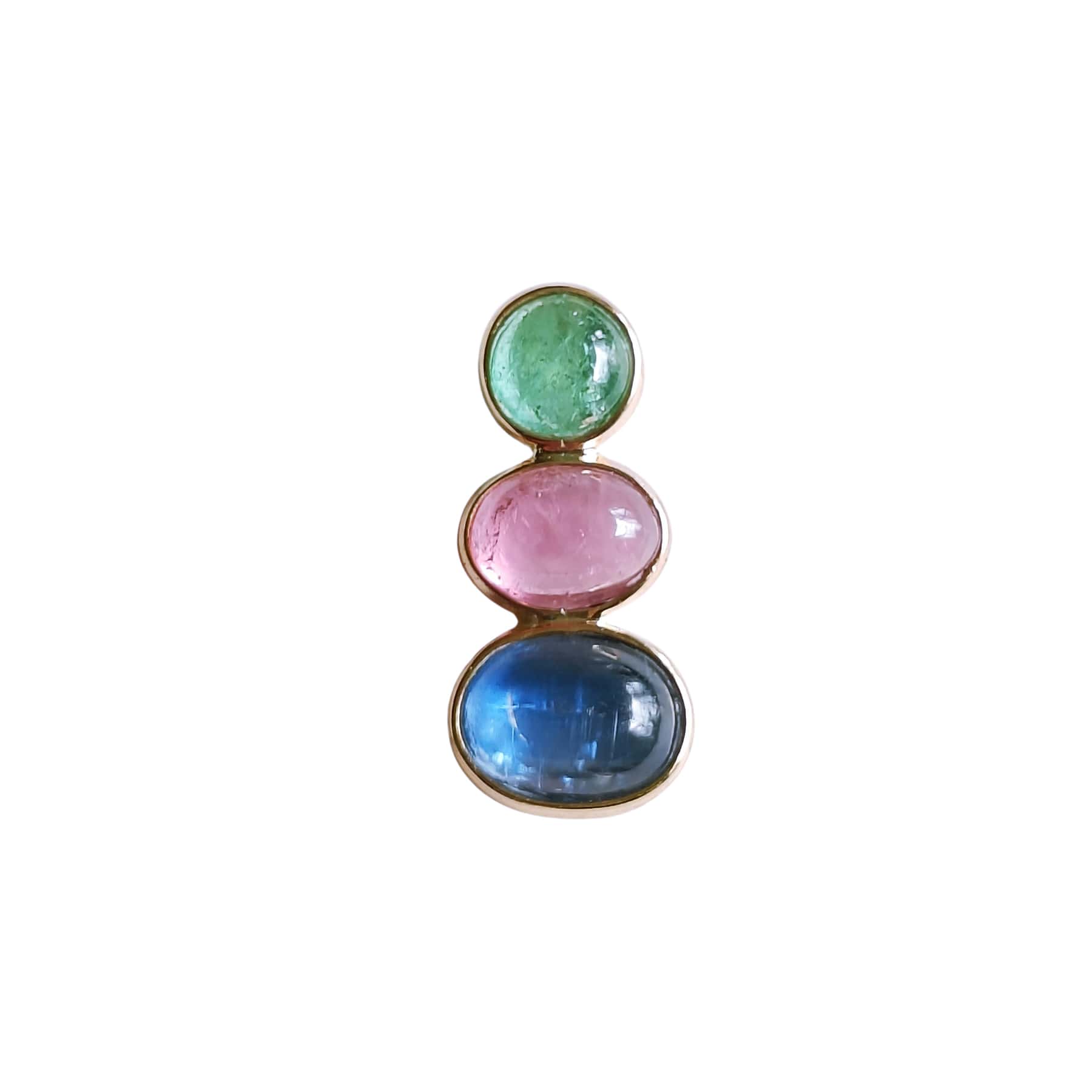 The Trinity of Hues Pendant reflects the serene balance of nature’s palette. Handcrafted in 14k gold and adorned with green, pink, and blue kyanite, the Trinity of Hues Pendant glows with harmony and elegance. Let the Trinity of Hues Pendant bring color and grace to your every moment.